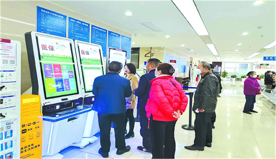 三、医保自助服务机“上岗”13项业务24小时不打烊。医保服务大厅医保自助服务机,让群众“7×24小时享受便捷、高效、优质的医保服务。“医保自助服务终端机”具备业务办理、查询、打印等功能,参保人通过刷医保电子凭证、身份证、社保卡等完成身份识别后,可办理查询个人参保信息、个人医保账户变动明细、药品目录、诊疗项目医疗服务设施、定点医疗机构、定点药店等信息,还能办理医保缴费、参保信息打印等13项业务。医保自助服务机由两块可触摸大屏组成,参保人员在工作人员的指引下,刷身份证,并按照屏幕提示操作,3分钟不到,医疗保险参保缴费信息查询和打印业务就办理完成,整个过程方便、快捷。