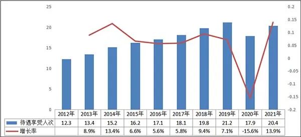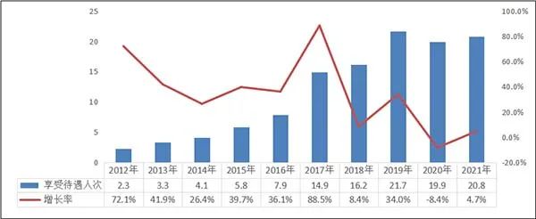2012-2021年居民医保享受待遇人次