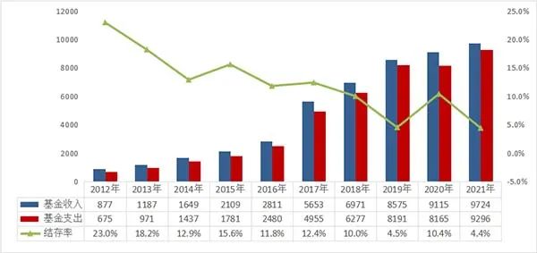 2012-2021年居民医保基金收支情况